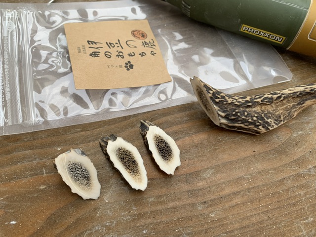 ちなみに、鹿の角も主成分はカルシウムなので歯科医院で歯を削られているようなニオイがしますよ(笑)