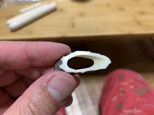 鹿の角とアワビ貝、意外な組み合わせだけど相性はバッチリな感じでした!