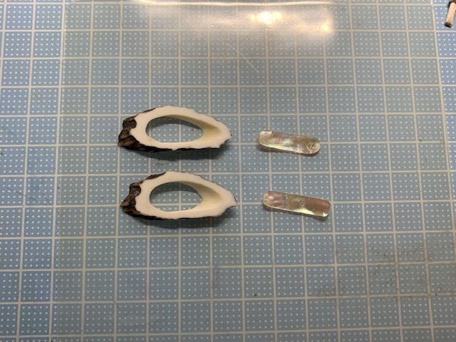 鹿の角を斜めに薄くスライスして、アワビ貝をレジンで封入してみました!