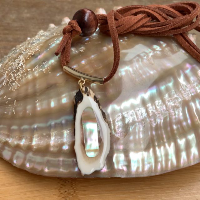 鹿の角×アワビ貝のチャームは完成したので、あとは好きなパーツを組み合わせてアクセサリーにすればOKです!