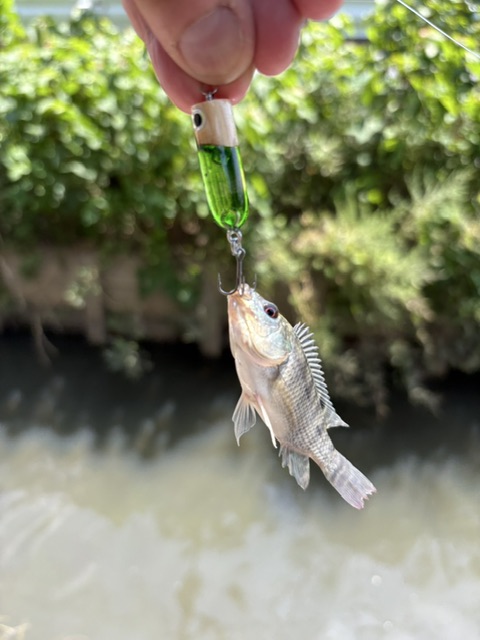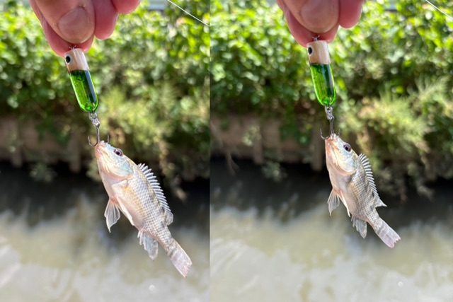 ティラピアが生息しているポイントが近所にあるのにもビックリしましたが、海用で作ってる鯵ポッパーで